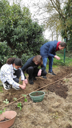 Avec l’aide M. Davy, Mme Hervé et Sophie, de l’association Zazous et Cie, les élèves ont réfléchi aux contraintes, aux types de fruits et légumes qu’ils souhaitaient faire pousser… et tout ça, en favorisant le recyclage, la récupération et le réseau des uns et des autres, bref : du développement durable, du vrai !
