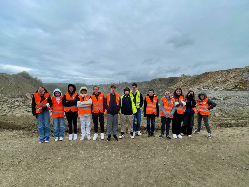 Les 4B quant à eux, ont visité l’entreprise « Rozen », en présence du nouveau directeur, Mr Mehran, et de deux de ses employés, afin de découvrir toute la chaîne de fabrication des vêtements, depuis la conception jusqu’à la vente. Spécialisés dans la fabrication des vêtements de travail (secteurs médical et de la restauration), les élèves se sont attardés à certains postes pour échanger avec des employés sur différents thèmes en lien avec le métier : création des patrons, découpe, couture, broderie, vente en boutique… Le lundi 15 avril, c’était au tour des 4D ! Cette fois-ci, ils ne sont pas allés bien loin car c’est l’entreprise Lessard située au Pont de Pierre qui les a accueillis. Après une petite présentation de l’ensemble du groupe Lessard, et plus précisément de la carrière, par Anne Lessard, les élèves sont allés sur le site en minibus.