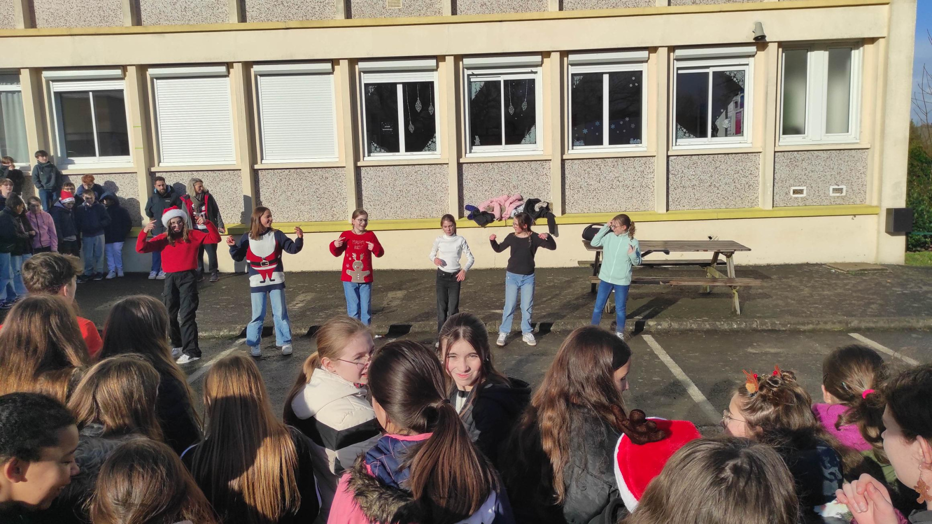 Après le succulent repas de fêtes, concocté par l’équipe d’agents sous la houlette de Yannick, quelques élèves ont proposé une démonstration de zumba sur la cour, sous les encouragements de leurs camarades et enseignants.
