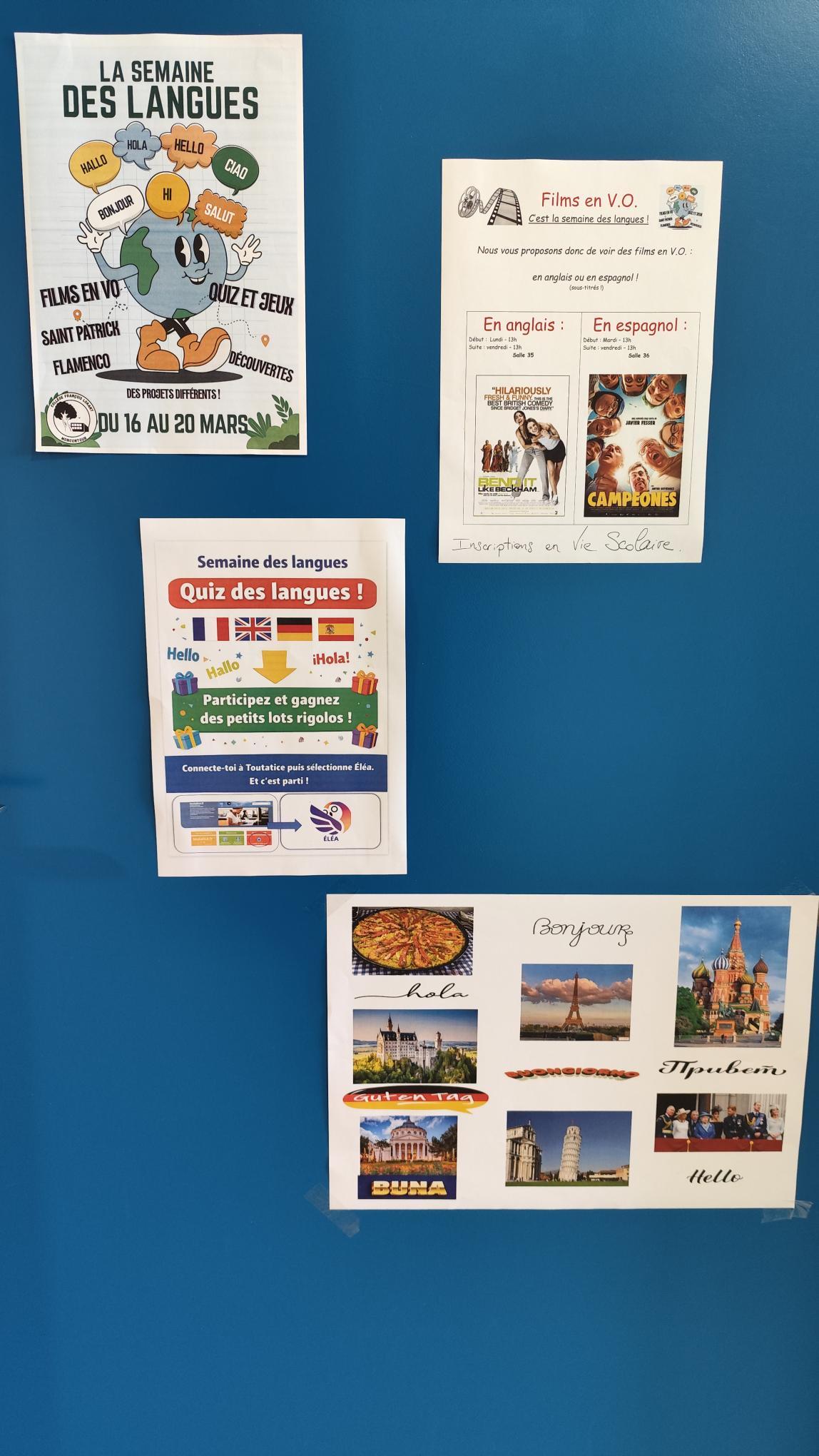 Jeudi 17 décembre, en association avec l’inauguration dans le nord de la France d’un monument commémorant les fraternisations de Noël en 1914 et 1915, les 75 élèves de 3 eme ont présenté leur travail de mise en voix de « paroles de poilus ». Ils ont choisi, présenté et mis en voix des lettres, poèmes, chansons, témoignages, journaux, récits dans les 4 langues des principales nations engagées dans le conflit.